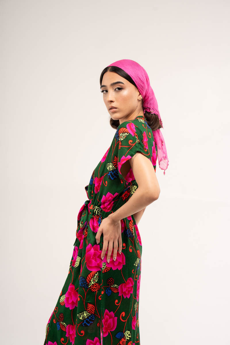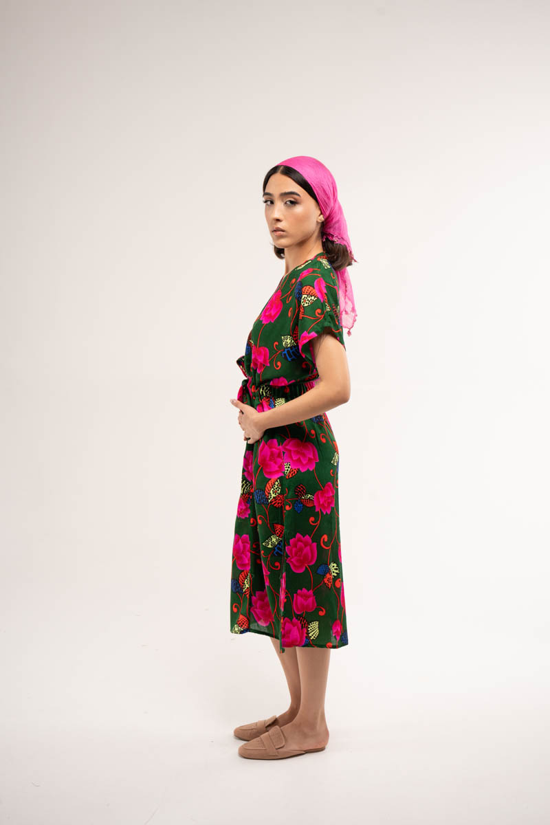 • Kullanım: Bel arkası lastikli önden bağlamalı elbise