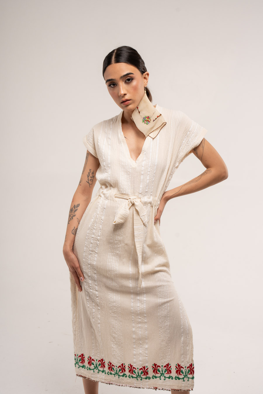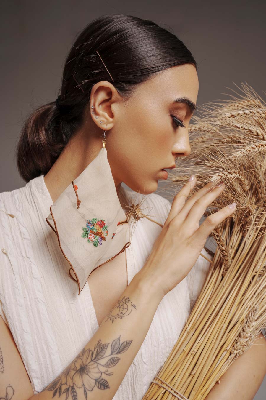 Dokumanın, kumaşın ve işlemelerin esnekliğine, dayanıklılığına var olan yaşanmışlıklarını olduğu gibi kabul ederek tasarlıyoruz.