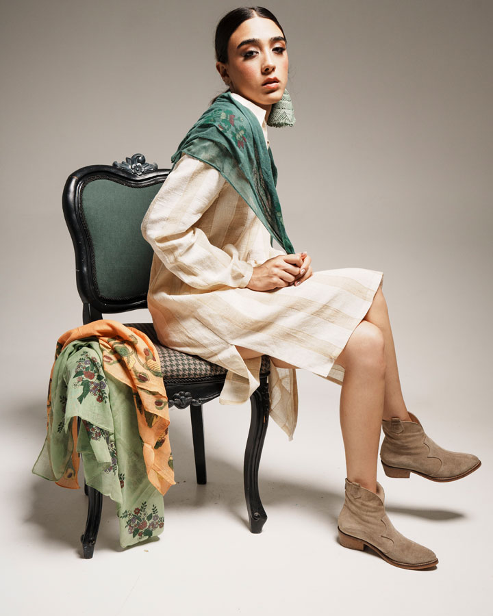 Dokumanın, kumaşın ve işlemelerin esnekliğine, dayanıklılığına var olan yaşanmışlıklarını olduğu gibi kabul ederek tasarlıyoruz.